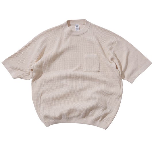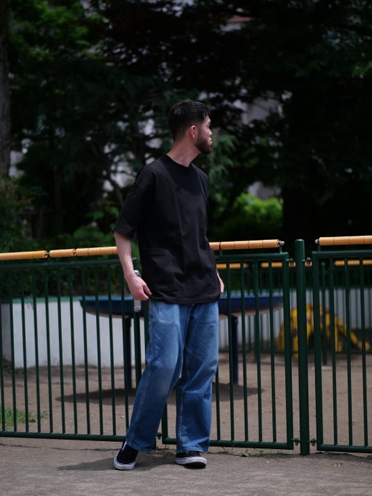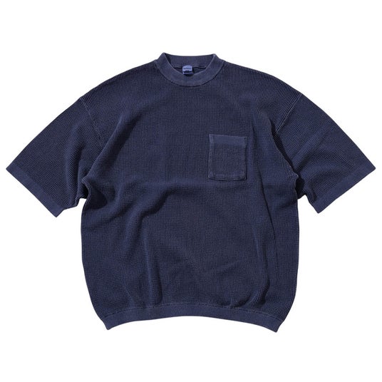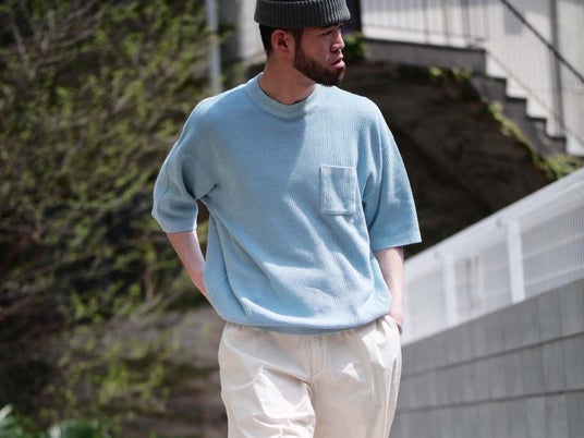 アメリカの定番“ポケT”に着想を得てデザインされた本作は、胸ポケットを配した、ベーシックで汎用性の高いデザインが特徴です。コットンニットという素材を夏に提案する理由は、その通気性の良さと肌離れの良い独特の着心地にあります。