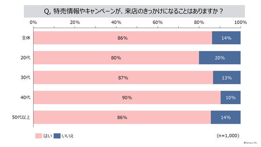 - 特売情報やキャンペーンが来店のきっかけになることがある86%、きっかけになるのは「特売や割引」