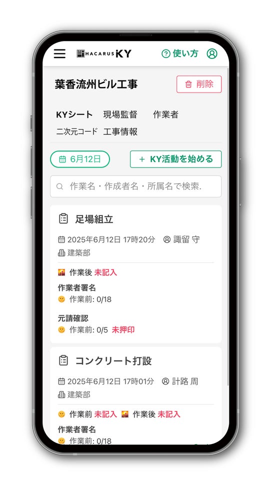 KYシートのクラウド保存・二次元コードアクセスに対応し、協力会社を含めた多現場・多関係者での運用に対応。