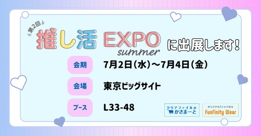 PP素材・PET素材のオリジナルグッズや販促品の作成ができる株式会社KASAMA(本社:石川県白山市)は、7月2日から4日まで東京ビッグサイトで開催される「推し活EXPO Summer」に出展します。