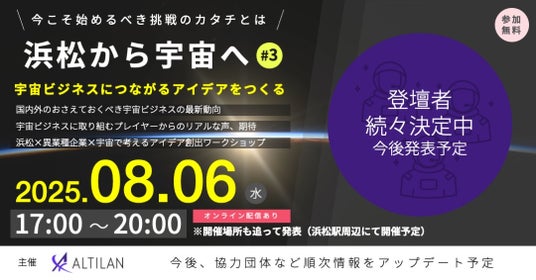 本年8月6日(水)に開催予定のイベント「浜松から宇宙へ#3」(チケットサイト準備中)