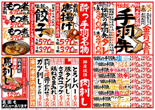 「居酒屋革命 酔っ手羽」がメニューを大幅リニューアル! 新メニュー69品が登場、名物「伝説の手羽先」は10フレーバーに進化!