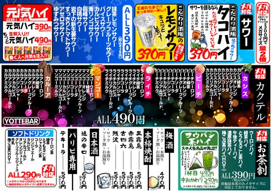 居酒屋革命 酔っ手羽 ドリンクメニュー
