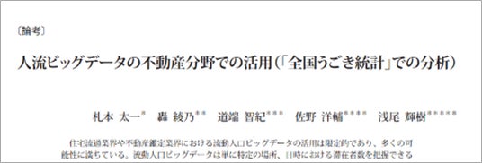 パシフィックコンサルタンツ株式会社(住所:東京都千代田区、代表取締役社長執行役員:大本 修)は、日本最大規模の不動産鑑定機関である一般財団法人 日本不動産研究所と「人流ビックデータの不動産分野での活用(「全国うごき統計」での分析)」をテーマに共同研究を行い、同研究所が発行している季刊誌『不動産研究』第67巻第1号(論考)にて公表しました。