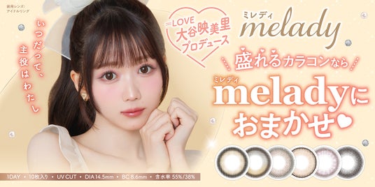『melady(ミレディ)』は発売以来、=LOVE 大谷映美里さんプロデュースのもと、こだわりをぎゅっと詰め込んだ、“盛れる“カラコンを展開してきました。こだわりを詰め込んだレンズは、誰でもきゅるんなかわいさにハマること間違いなし!今後も、”meladyにおまかせ(ハート)“いただけるような盛れるカラコンをお届けしてまいります。