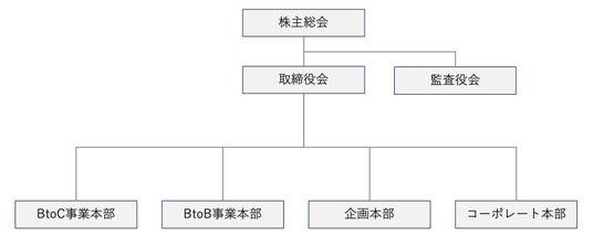 - 「BtoB事業本部」には、「事業企画部門」、「営業部門」「デリバリ部門」を置いた