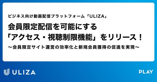 法人向け動画配信プラットフォーム「ULIZA(ウリザ)」を提供している株式会社PLAY(本社:東京都渋谷区、代表取締役社長:黒田和道)は、保有する会員情報(プール)との連携により、サイトアクセスや動画コンテンツ視聴に制限をかけられる新機能を追加したことをお知らせします。