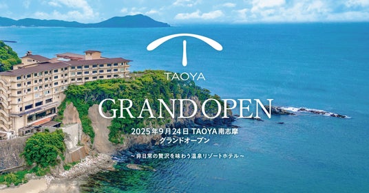 2025年9月24日(水)にグランドオープンする「TAOYA南志摩」の宿泊予約を7月1日(火)より開始いたしました。大江戸温泉物語グループが展開するTAOYAブランドは全11施設、また、三重県内の大江戸温泉物語グループとして「TAOYA志摩」「大江戸温泉物語Premium 伊勢志摩」「大江戸温泉物語Premium 鳥羽彩朝楽」「大江戸温泉物語 志摩彩朝楽」に次ぐ、5つ目の施設となります。