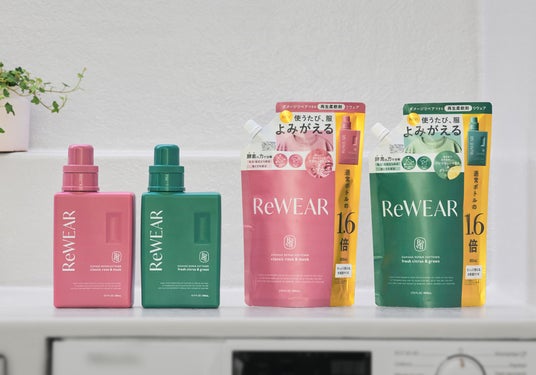 再生ファブリックケアブランドReWEAR (リウェア)「再生柔軟剤 クラシックローズ&ムスク/フレッシュシトラス&グリーン 」は、4月16日に公式サイトで実施したキャンペーンにおいて、1時間で3,000本を完売*1。また発売以降、楽天市場で2度にわたり完売*2、8つのランキングで1位を獲得*3するなど好評を博しています。
