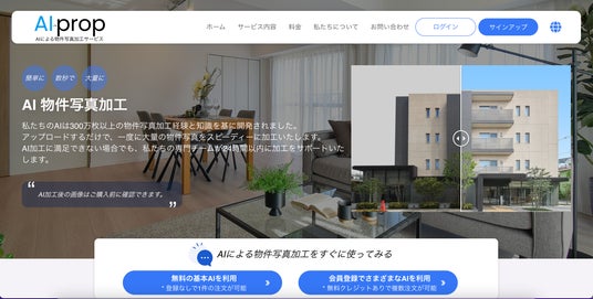 【無料版】AI物件写真加工サービス「AI-prop」をリリース。登録なしですぐにご利用いただけます。