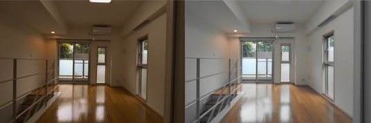 AIによる物件写真加工サンプル ビフォー(左)アフター(右)