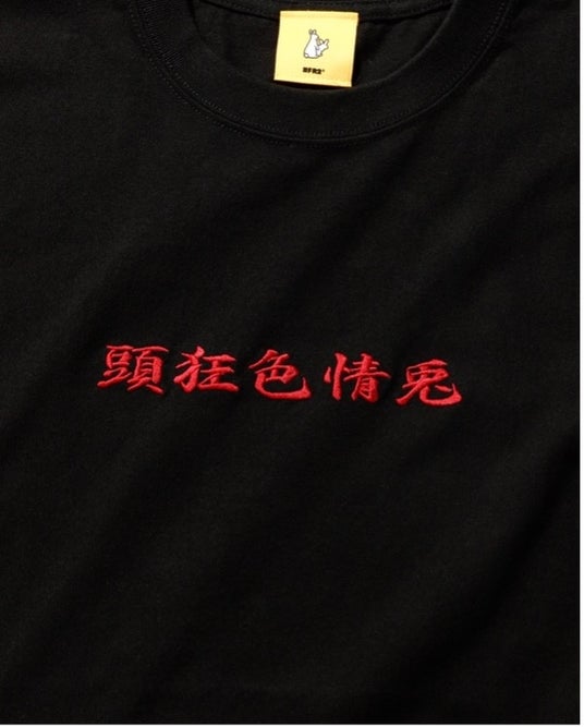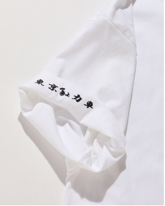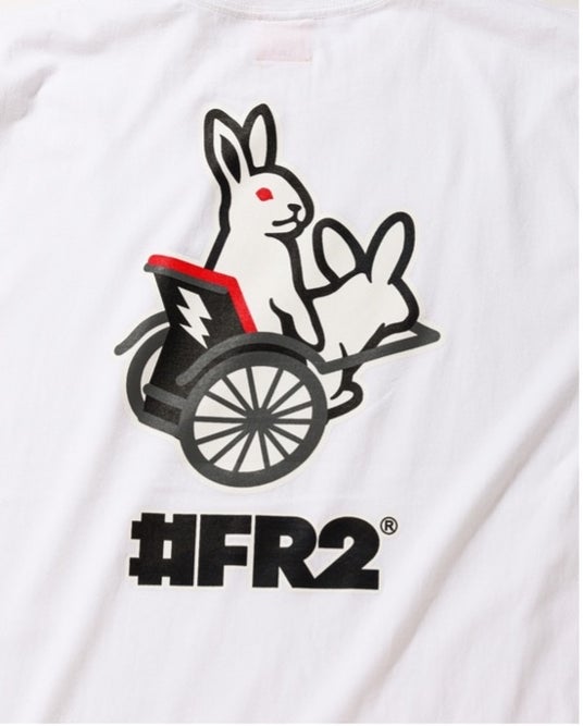 特徴:フロントに「頭狂色情兎」ロゴを刺繍し、バックには「#FR2」の象徴であるウサギのアイコンと人力車を組み合わせた特別なグラフィックを配置。さらに、袖口を折り返すと、「東京力車」のロゴが現れる、遊び心の効いたディテールを加えています。