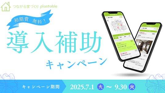 2025年7月∼2025年9月末まで先着3社限定で、『つながる家づくりplantable』の初期費用、通常30万円を無料で提供致します。