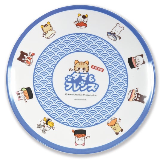 「まぐろ、サーモン、玉子」にかわいいタマ&フレンズとキャンペーンオリジナルキャラクター「ダイ」が描かれたコラボ限定寿司皿をセットで販売します。