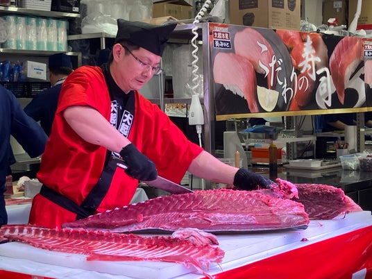 今日はオープンを記念して開催されるまぐろの解体ショーの日。