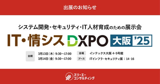 ISO・Pマーク支援実績数全国No.1(注1)のISO/Pマークの取得・運用支援サービス「認証パートナー」を提供する株式会社スリーエーコンサルティング(本社:大阪府大阪市、代表取締役社長:竹嶋 寛人)は、3/13(木)~3/14(金)にインテックス大阪で開催されるシステム開発・セキュリティ・IT人材育成のための展示会「第1回 IT・情シスDXPO 大阪'25」に出展いたします(注2)。「ITインフラ・セキュリティ展」にて、クラウド型ISO管理ツール『ISMSアシスト』『9001アシスト』『Pマークアシスト』をご紹介、ISO・Pマークのプロが実際にご担当者さまのお悩みをお伺いします。クラウド型ISO管理ツールは、累計8,000社以上のISO/Pマークの取得・運用支援を行っている弊社が、これまで蓄積してきたISO管理に対する多数の悩みをもとに開発したクラウド上でISOを運用できるツールです。文書作成、記録作成といった新規認証・運用で煩雑だった審査前の書類を一元管理できるため、書類の整理整頓やスケジュール管理が容易になり効率的な新規認証・運用を実現します。本出展を通じて、より多くの円滑なISO・Pマーク取得・運用をサポートすると共に、企業の業務効率化に貢献します。