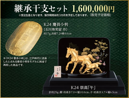 今回の「大黄金展」の特別企画品として、馬の文字を反転した「K24 左馬小判」を先行販売します。