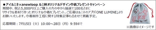 ※ネット通販「アイルミネ」は7月15日(火)以降商品お届けのお客さま(税込3,000円以上購入の方)にランダムでプレゼント。対象期間は~7月28日(月)お届け分まで。