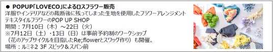 浴衣での来館による飲食特典など、夏を楽しみ尽くす企画を多数展開します。7月10日(木)~22日(火)にかけて、期間限定OPENの「LOVECO」ではロスフラワーの販売を実施。さらに7月24日(木)~8月6日(水)期間はSPECIAL 2WEEKSを開催!アウトレット品やアーカイブ品などの掘り出し物を見つけてみませんか?