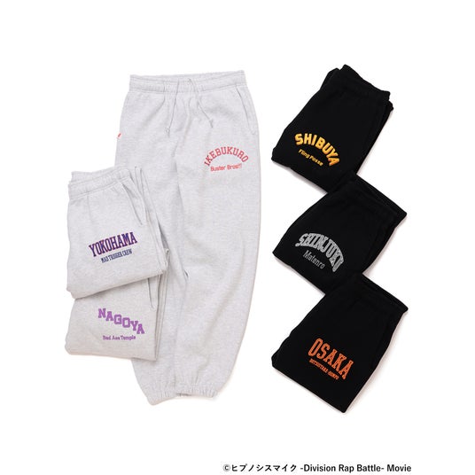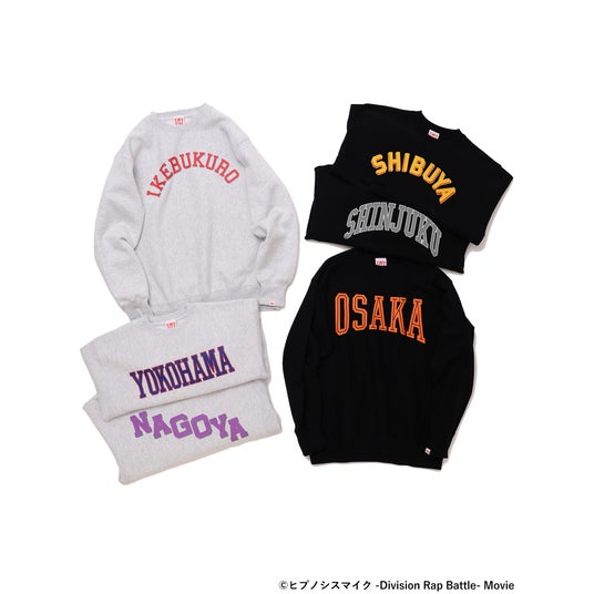 今回登場するアイテムは、作中に登場する“ディビジョン”と呼ばれる各チームの拠点地域名を、カレッジ風フォントでデザインし、スウェットのセットアップに落とし込みました。
