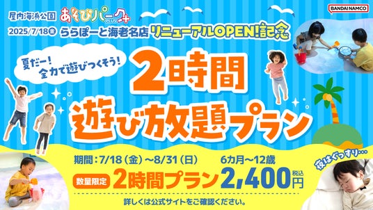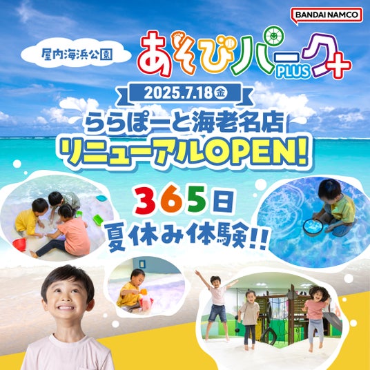株式会社バンダイナムコエクスペリエンスは、屋内遊び場『あそびパークPLUS ららぽーと海老名店』を2025年7月18日(金)にリニューアルオープンします。