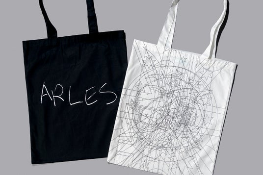 ペインティング作品《アルル》をモティーフにしたトートバッグ(写真左)。