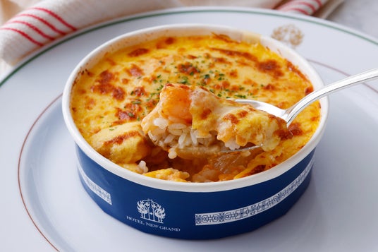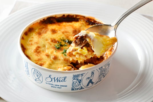 ビーフデミグラスドリア6代目総料理長関口真司がホテルニューグランド発祥のドリアを新たなスタイルにアレンジしました。伝統のデミグラスソースを使用し、やわらかな牛肉の旨味となめらかでコク深いグラタンソースが織りなす、濃厚でありながら優しい味わいの一品に仕上げました。