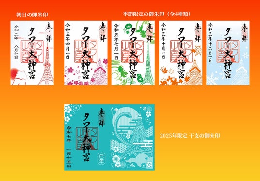 また、タワー大神宮ではご参拝の証として、以下の御朱印を授与しております。