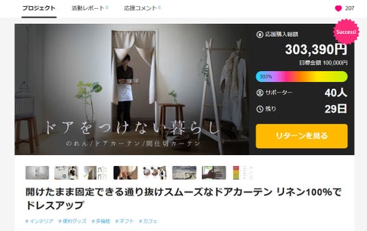 開始45分で目標達成!!1日で達成率300%!ヨーロッパリネンのドアカーテン(のれん)。makuake(マクアケ)にて先行販売開始!
