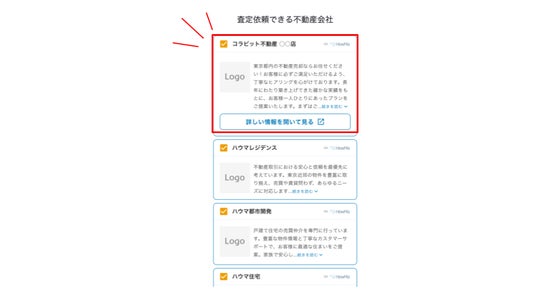 査定依頼をする会社の選択ページにも紹介が掲載されます。