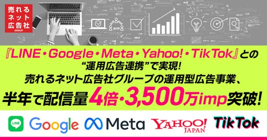 『LINE・Google・Meta・Yahoo!・TikTok』との“運用広告連携”で実現!売れるネット広告社グループの運用型広告事業、半年で配信量4倍・3,500万imp突破!