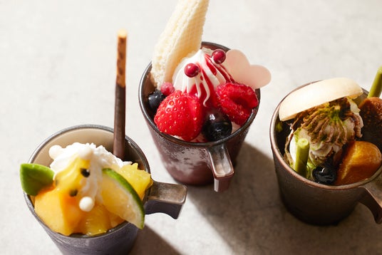 左から「トロピカルフルーツのパフェ」、中「赤いベリーのパフェ」、「抹茶とチョコレートのパフェ」(イメージ)