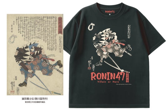 江戸時代の浮世絵師・歌川国芳による名作『誠忠義士伝』を、東京都立中央図書館の所蔵データを基に再構成。赤穂浪士四十七士をアパレル製品として展開し、忠義の精神を身近に感じられるアイテムが誕生しました。