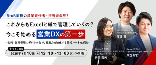 両社の連携の一環として、「“紙とExcel卒業” 営業DXの第一歩」をテーマにしたオンラインセミナーを開催します。- 営業DXのリアルな現場課題と、その乗り越え方