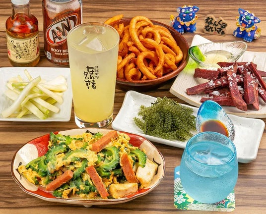 オリオンビールや泡盛とともに、ゴーヤチャンプルやラフティなど定番料理が並び、泡盛やシークヮーサー、さんぴん茶を使ったドリンクなど、南国気分を盛り上げる一杯も充実。
