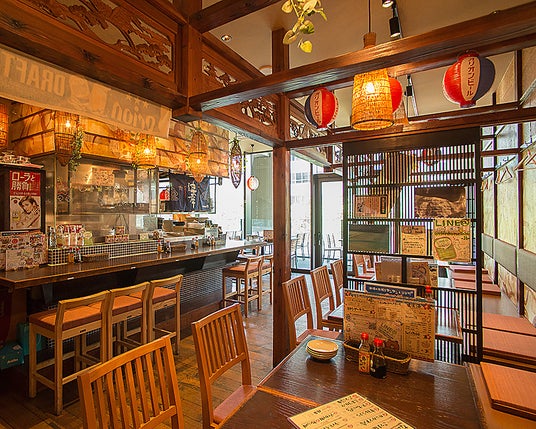九州・沖縄の郷土料理と、現地ならではのお酒が堪能できる古民家風の居酒屋。明るくにぎやかな店内は、まるで沖縄にトリップしたかのような非日常空間。