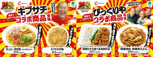 「キブサチ」監修商品の冷しカレー担担麺は、豆乳を合わせたスパイスの効いたまろやかな味わいのカレースープに、練りごまをトッピングすることで、ごまの風味やコクを感じられる仕立てにしました。キブサチ炒飯は、中華クラゲと数の子のコリコリ、プチプチとした食感を楽しめる炒飯おむすびです。「びっくりや」監修商品は、お店で提供されている味わいに再現した特製の濃厚なコクのある味噌だれを使用した、焼肉弁当と焼きうどんの2商品を発売いたします。
