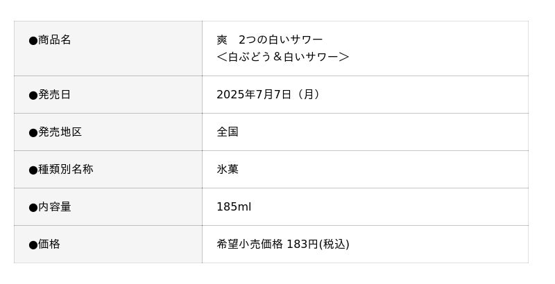 株式会社ロッテ(東京都新宿区、代表取締役社長執行役員:中島英樹、以下 ロッテ)は7月7日(月)に、微細氷入りでシャリッとした食感とさっぱりとした後味が楽しめる 「爽」ブランドから、『爽 2つの白いサワー<白ぶどう&白いサワー>』を発売いたします。