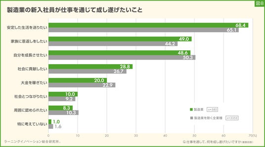 - 仕事を通じて成し遂げたいこと「安定した生活を送りたい」がトップ。「自己成長」は過去最低の割合に