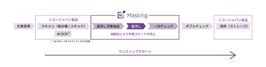 リコージャパンが展開する複合機、スキャナ、AI-OCRなどの各種ソリューションと「Insight Masking」との連携により、紙文書の電子化から秘匿化、保管・管理に至るまでをワンストップでカバーするセキュリティ強化ソリューションを提供してまいります。