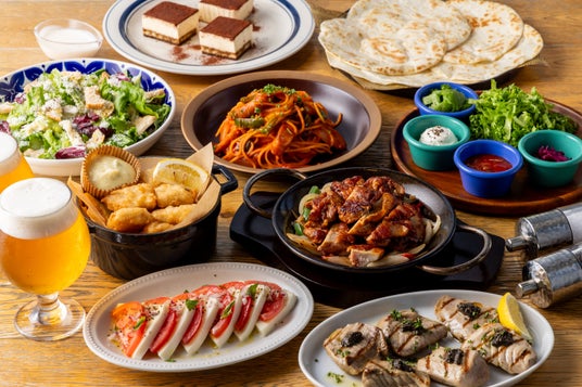 夏の夜に映える料理とドリンク。2つのコースで楽しむ飲み放題付きディナー