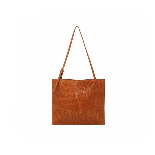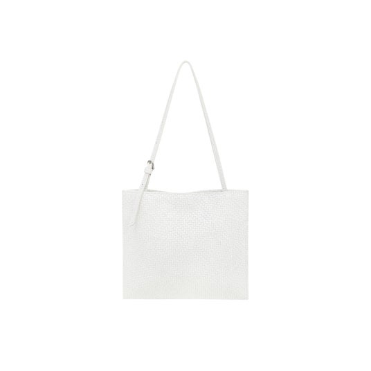 荷物を入れた際、自然なシルエットが特徴の平たいシェイプ、プレスを使って精巧に演出したウーブンパターンが魅力を増します。トートバッグとショルダーバッグの2つのスタイルで着用でき、実用性まで備えています。