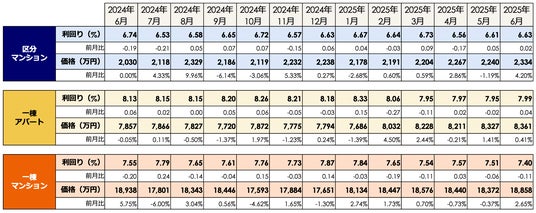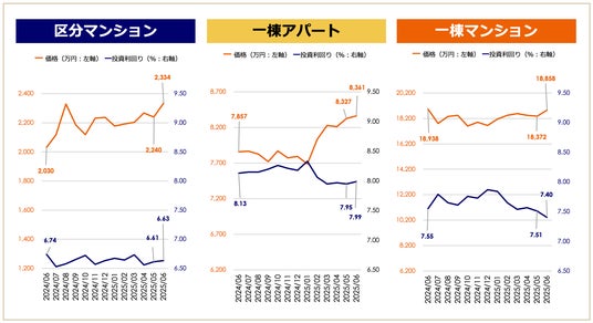 住宅系収益不動産、3種別とも価格上がる 「収益物件 市場動向マンスリーレポート」2025年6月期