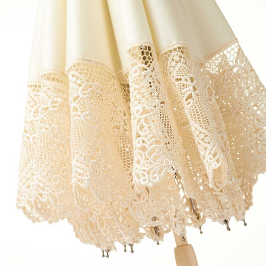 現代では希少な日本製のレースを使用したラインナップを多く取り揃えております。繊細で立体感のあるレースは見栄えが良く、遠くからでも華やかさを感じられます。また、日傘を差すとレースから差し込む木漏れ日のような影の美しさをお楽しみ頂けます。