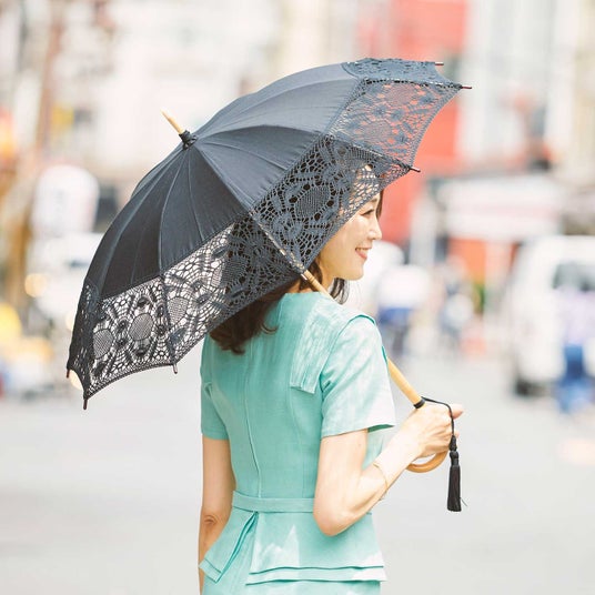 日傘は「純パラソル」と「晴雨兼用傘」に区別することができます。遮光や遮熱、耐水性など実用性・機能性を重視した「晴雨兼用傘」とは異なり、日よけに特化した「純パラソル」は高いデザイン性や素材を活かした生地、レースの隙間からこぼれ落ちる光までも楽しめ、昔ながらの風情や趣が感じられるアイテムです。
