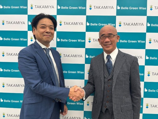 (左)タカミヤ TAP事業最高執行責任者 岡本 裕之、(右)ベルグリーンワイズ 代表取締役 小森 弘道氏