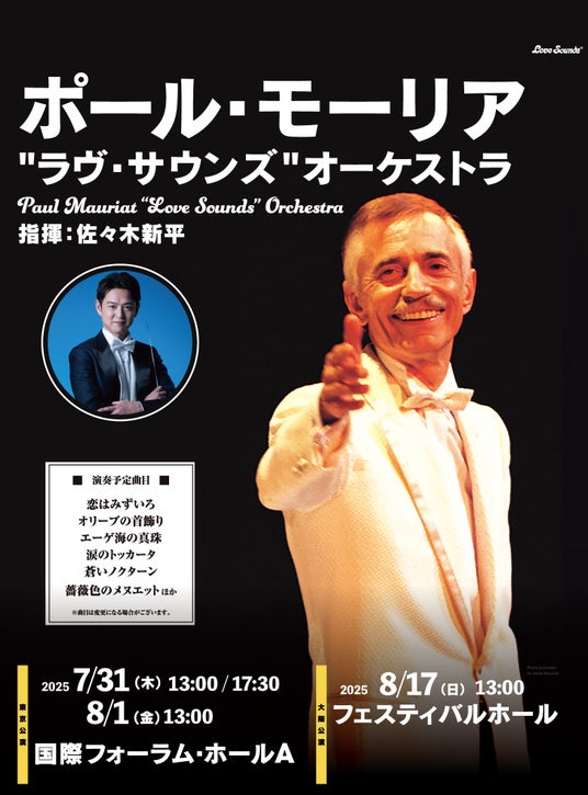 ポール・モーリア生誕100周年記念コンサート「ポール・モーリア“ラヴ・サウンズ”オーケストラ」は、7月31日・8月1日の2日間(全3公演)、東京国際フォーラム ホールA、8月17日、大阪 フェスティバルホールで開催される。