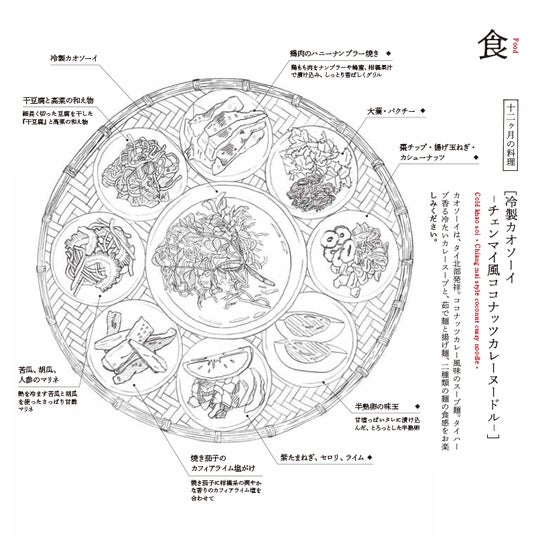 第一弾となる7月(7月9日~8月3日)は、小暑を迎え、本格的な夏の到来とともに体力を奪われるこの季節にうれしい「冷製カオソーイ チェンマイ風ココナッツカレーヌードル」。タイハーブが香る冷たいカレースープと茹で麺と揚げ麺、二種類の異なる食感を様々なトッピングと共にお楽しみください。
