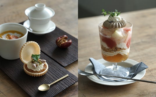 ドリンクは中国茶のラインアップが増え、温かいお茶は専用の茶器を用いて蓋碗をずらして飲むスタイルに。茶葉のおいしさを直接味わい、差し湯をしながらゆっくりと一煎ごとの変化をお楽しみいただけます。季節ごとにご用意するデザートメニューとともにお召し上がりください。CASICAの空間とここで流れるゆるやかな時間を、お食事やお茶と共に味わってください。