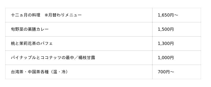 月替わりで提供する「十二ヶ月の料理」は、季節ごとの身体の状態や体調の変化を鑑みた食養生をメニューに取り入れました。